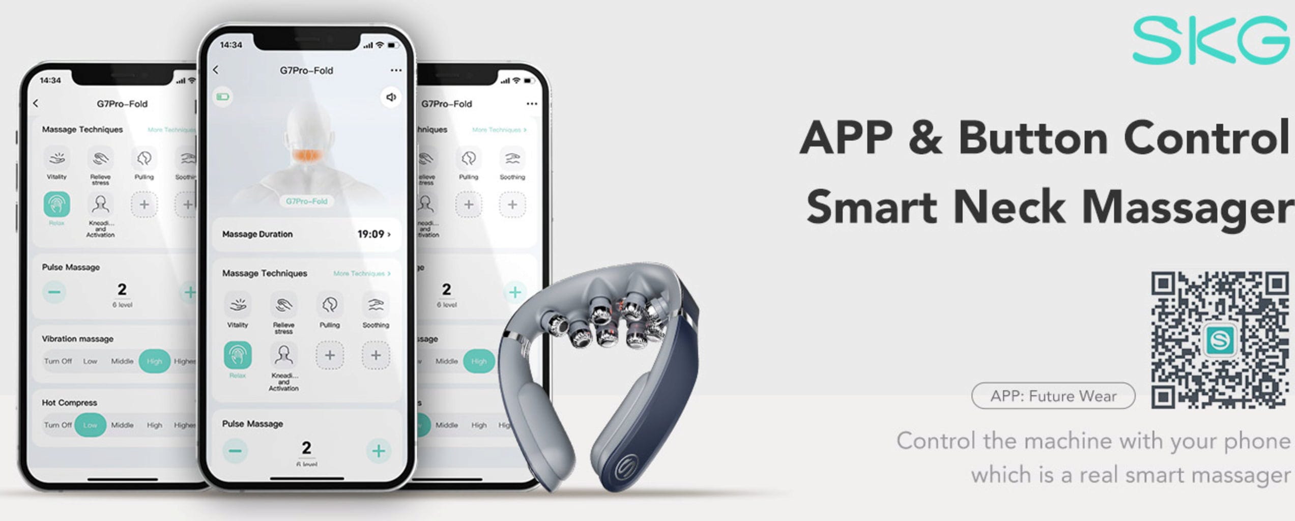 SKG G7 Pro-Fold přináší inovativní řešení pro Vaše každodenní pauzy, ať už v kanceláři, doma nebo na cestách. Díky promyšlenému 360° flexibilnímu designu lze přístroj kompletně složit a snadno uložit do jakékoliv tašky. Konstrukce je navržena tak, aby se dokonale přizpůsobila tvaru Vašeho krku a zajistila přesné působení masážních hlavic.