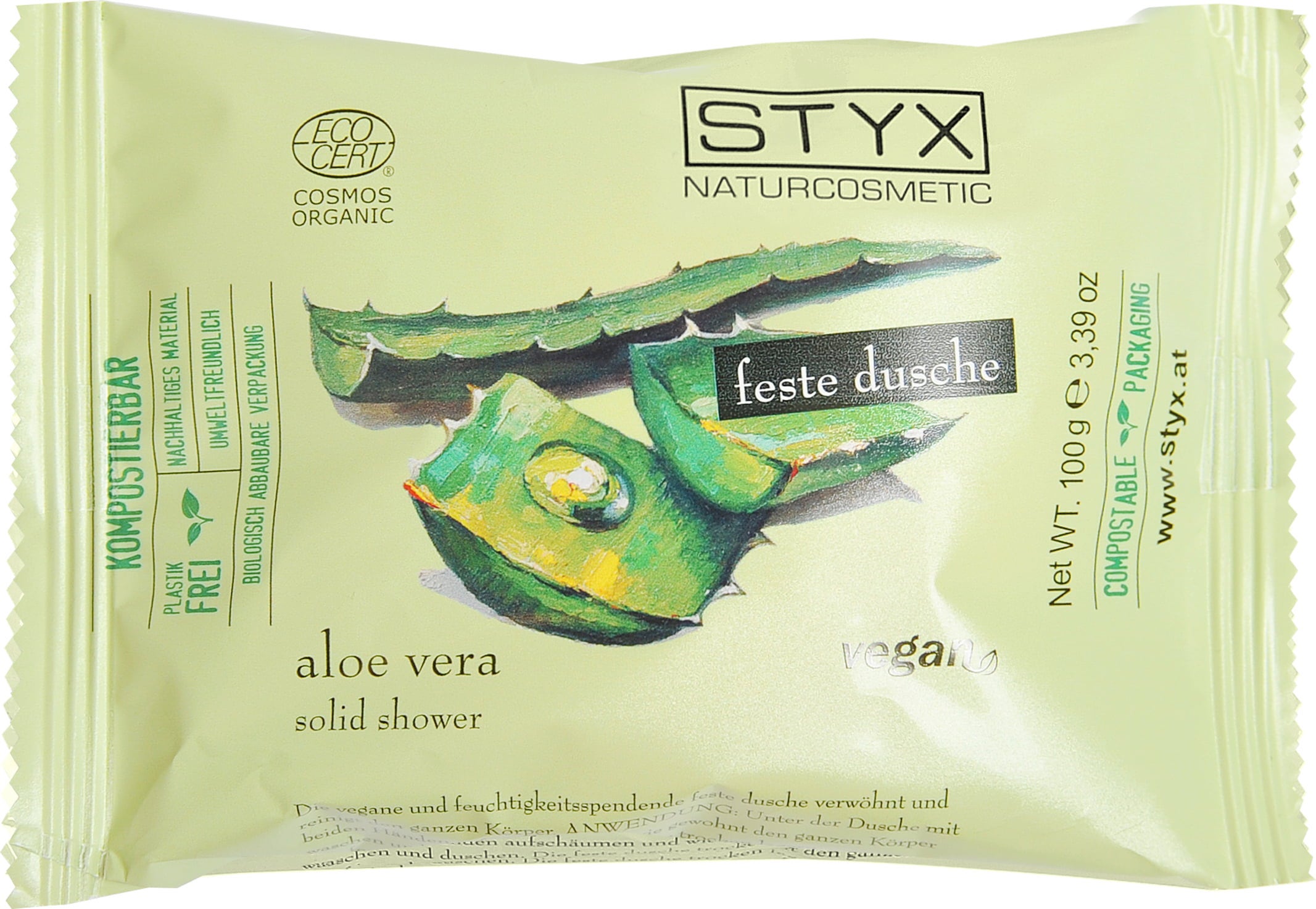Tuhé sprchové mýdlo s aloe vera značky Styx jemně pečuje o pokožku a udržuje ji pružnou a hebkou. Při styku s vodou mýdlo vytváří příjemnou pěnu a šíří nádhernou vůni. Obal neobsahuje plasty a je zcela biologicky rozložitelný.