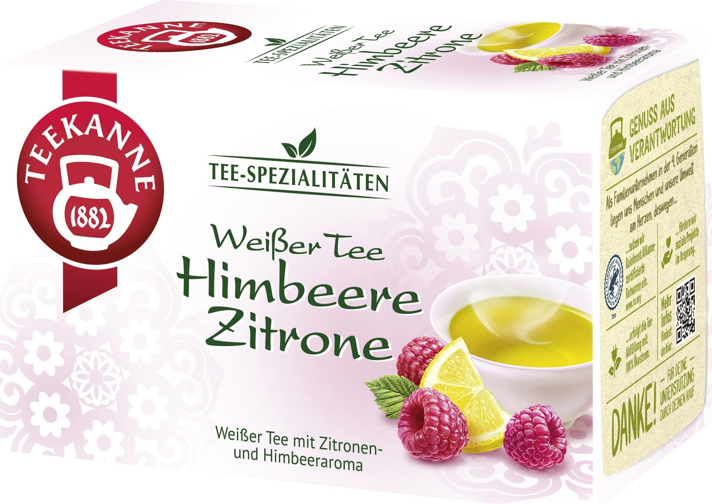 Opřete se a nechte se hýčkat jemnou lahodností čaje TEEKANNE - bílým čajem s malinou a citronem. Bílý čaj tvoří dokonalý základ pro ovocnou sladkost malin a jiskřivou svěžest citronu. Výsledkem je dokonale vyvážený chuťový zážitek – ideální jak pro klidné chvíle, tak pro osvěžující potěšení během dne.