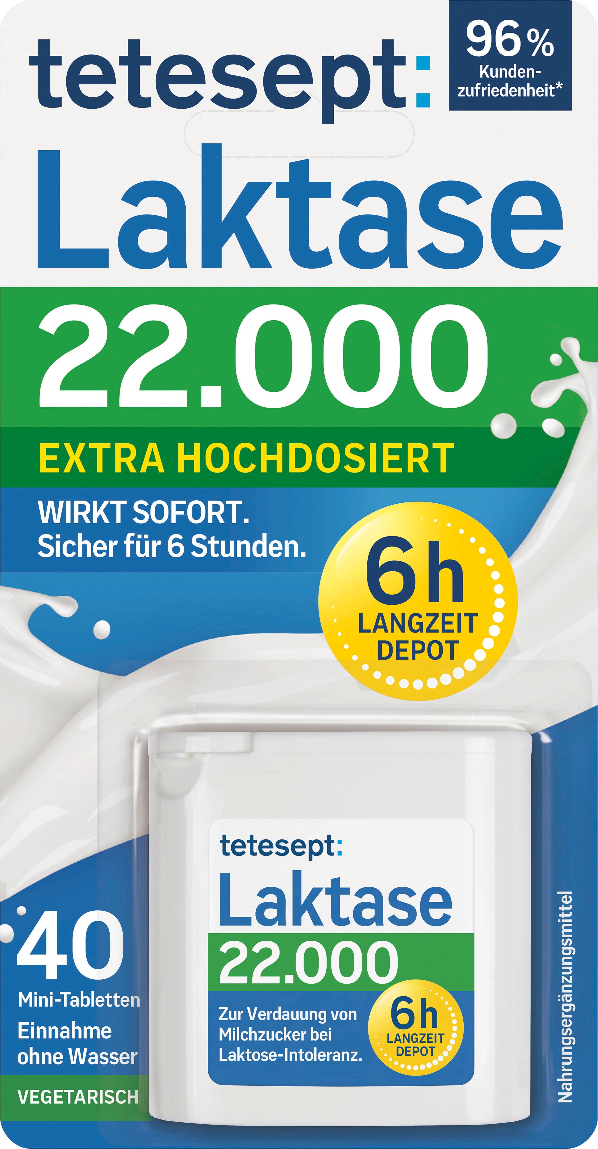 Tablety Laktáza 22000 pomáhají při odbourávání mléčného cukru u osob s laktózovou intolerancí. Jedna tableta rozloží přibližně 55 g laktózy. Díky prodloužené enzymatické aktivitě je laktóza odbourávána až po dobu 6 hodin. Díky tomu jedna tableta pokryje i menší následující jídlo. Praktické minidózy navíc umožňují mít tablety stále po ruce – ideální na cesty.