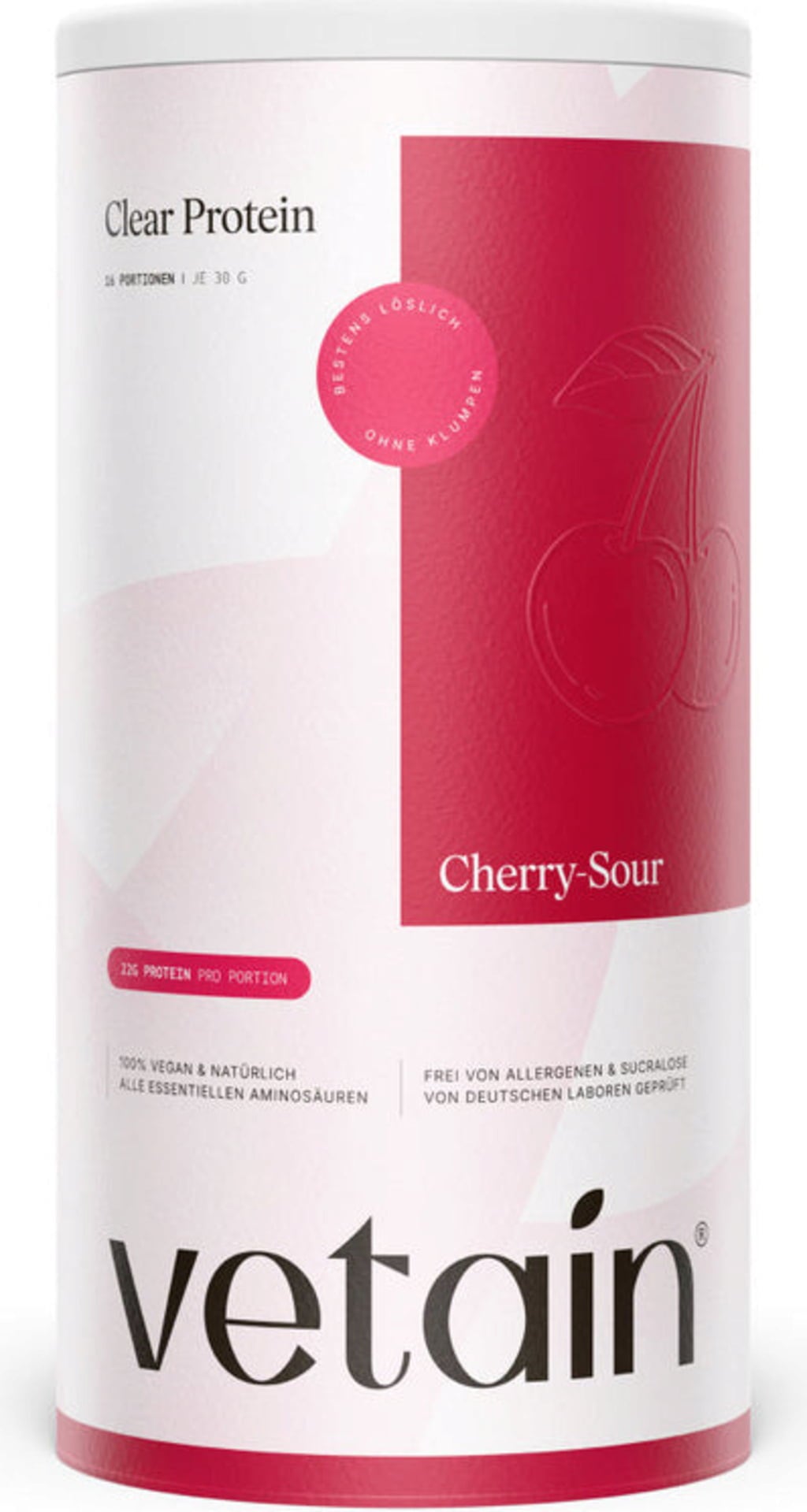 hrachový protein, inulin čekanky, přírodní aroma, kyselina citronová, koncentrát z třešňové šťávy, l-methionin, l-histidin, L-Tryptophan, Rote Rüben Pulver, sladidlo (Steviol Glycoside)