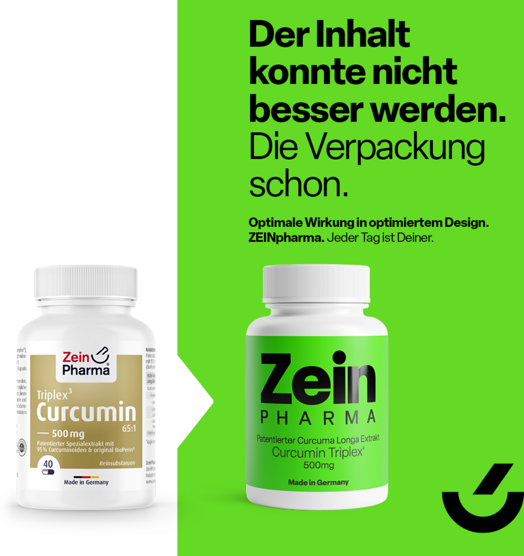 Kapsle Curcumin Triplex³ od ZeinPharma obsahují vysoce kvalitní kurkumin-C3-komplex® a BioPerine®, extrakt z černého pepře. Veganské kapsle neobsahují žádné syntetické přísady.